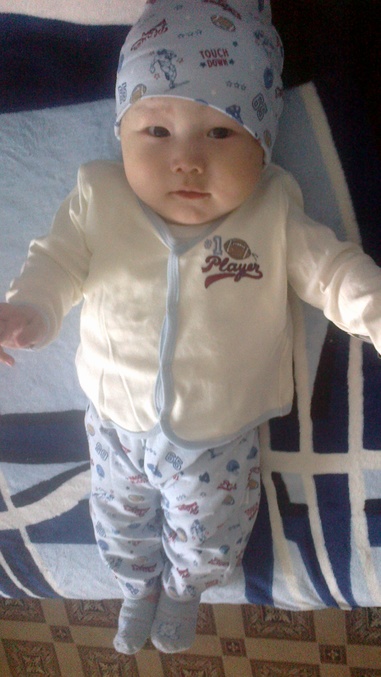 вес-8900 кг, рост-70 см, обхват головы-44 см, обхват груди 46 см) умеем переворачиваться и сидеть, ползать пока не научились) лезут 2 нижних зуба! прикорм у меня педагогический, а не как у многих здесь я заметила педиатрический,т.е. постепенное введение сначала овощей и т.д. Кушаем пюрешки, кашки, яблоки, бананы, очень любим супы с мелкими макарошками, едим картошку(ну конечно размельченную), грызем, сосем печеньки) а еще сыне почему-то ну совсем не понравились соки, зато сына очень любит ну совсем обычный чай или водичку) а так в основном мы на ГВ (иногда можем поесть смесь, когда мамули нет дома). тааак, еще совсем недавно научились тянуть к маме ручки, что не может не радовать))) установился режим дня, днем спим 4-5 раз по 1-1,5ч)