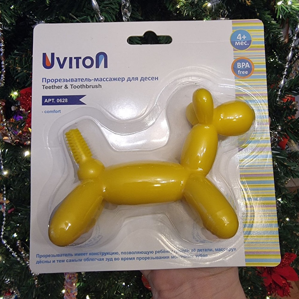 А еще, предварительно изучив отзывы в интернет-магазине Золотого яблока, заказала игрушку-прорезыватель UVITON pony baby. В магазине ее не было в наличии, только под заказ доставляли. У моего малыша как раз режутся зубки, поэтому эта покупка была очень актуальна. На игрушку наношу специальный гель для десен, яркий цвет сынишка любит, и он с удовольствием до сих пор играет с прорезывателем. Особенно его хвостик привлекает, он как мягкая щеточка.