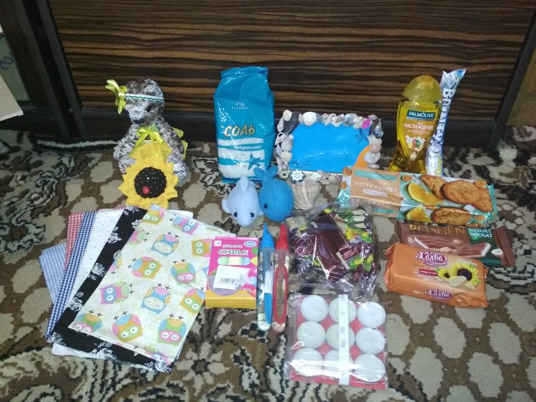 Наконец-то я выиграла слоника. Да ещё вот такого замечательного в заново жирафика. Пока шли с почты дети спорили чей он будет. Но в итоге малой забрал себе))) Спасибо огромное Катюше с Харькова за такое зелёное Вязаное чудо и за вкусняшку и чудесные цветочки.