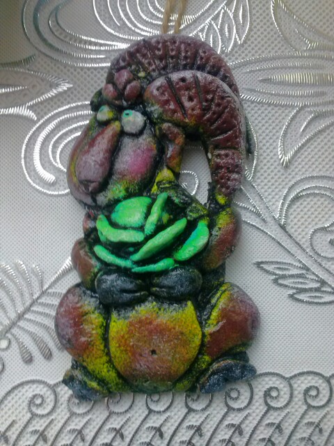 Немного предъистории. Лепила я тут недавно отару сувениров на Новый Год. Предполагались они в качестве подарочков и дополнений к подарочкам. Но пришли в гости две не вмеру хапужистые подруги и( как мимо пройти) схватили два экземпляра из сушившейся отары. Сказали, что авансом на Новый Год. Потом сказали, что, мол, как же так, в праздник они без подарка? Подаришь ведь хоть что-нибудь, говорят. " Фиг вам!"- сказала я. " Мы и на фиг согласны!"-ответили они. И вот что получилось)