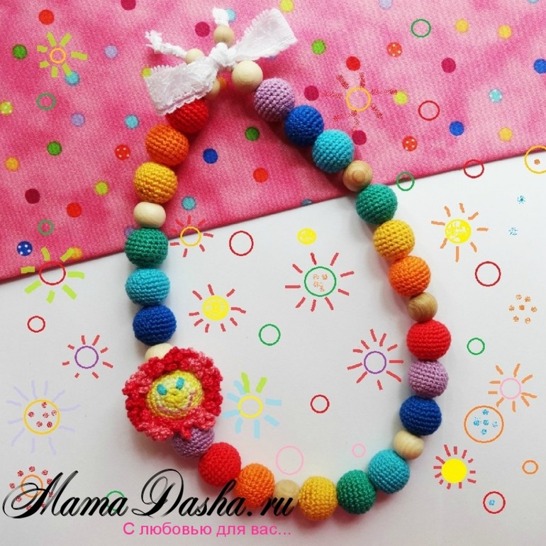 Слингобусы разноцветные с игрушкой солнышком! Все бусины бук (можжевельник). Приятный можжевеловый запах, обвязанные бусины из 100% хлопка ! Подойдут по цвету почти к любому слингу или эрго-рюкзачку!