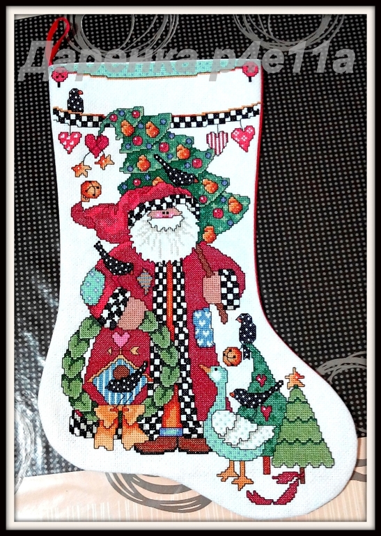 Работа заняла 1,5 месяца вечерами после работы и выходные, длина 41см. Носок функциональный с подкладочкой и прочими прибамбасами) Жаль канву плохо видно, она с блестками, точно как снег под фонарем) Уехал к Лена