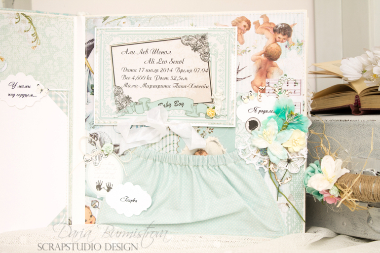 Добавлю лишь то,что в основе моих идей лежит полное взаимодействие с заказчиком и желание максимально полно воплотить в жизнь все его фантазии.Мы вместе с заказчиком выбираем бумагу и украшения,детально обсуждаем план и сценарий работы.