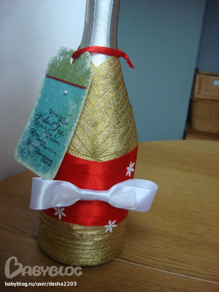 И заодно завезу им бутылочку шампанского,уже декорированного под НГ.Все делаю заранее,т.к. чем ближе к празднику-тем горячее будет.Уже получила корпоративный заказ на бутылки и бокалы-буду делать все разные,но в одном стиле.Думаю будет интересно)