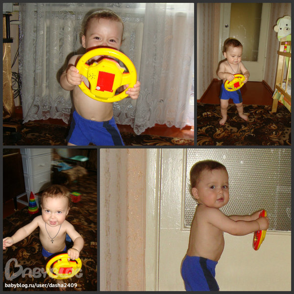 Мы ещё у дедушки в машине любим стоять за рулём - за уши не оттащишь!!!