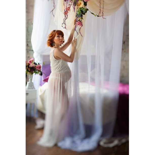 Пару слов о зале Авиатор: Многие говорят, что зал темный, мрачный и там скучно. Не соглашусь! Во-первых, в зале появилась чудесная кровать, украшенная цветами. Она очень красивая, и можно придумать много красивых образов, подходящих под нее. С другой стороны, в зале есть более спокойные декорации в стиле "лофт", именно они и добавляют женственности и красоты съемке
