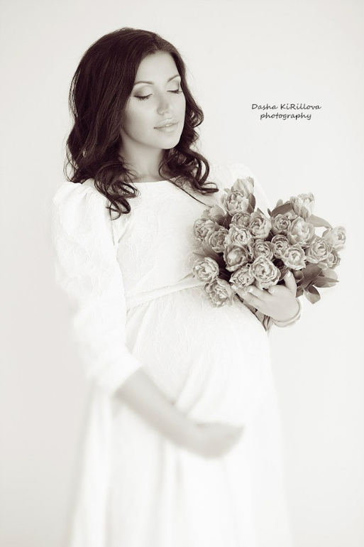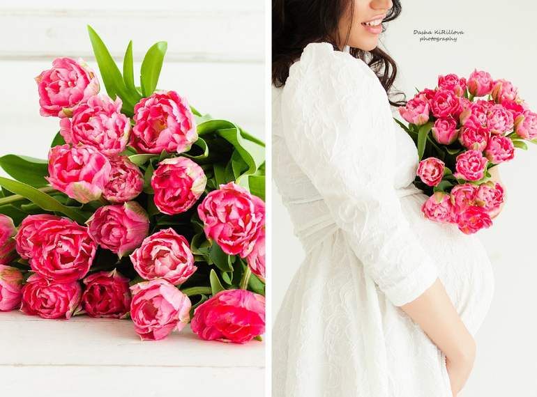 Хочется на примере этой съемки показать, что не нужно бояться одевать белое в белую студию и всегда красиво на съемке смотрятся живые цветы (лучше всего тюльпаны или мелкие розочки)