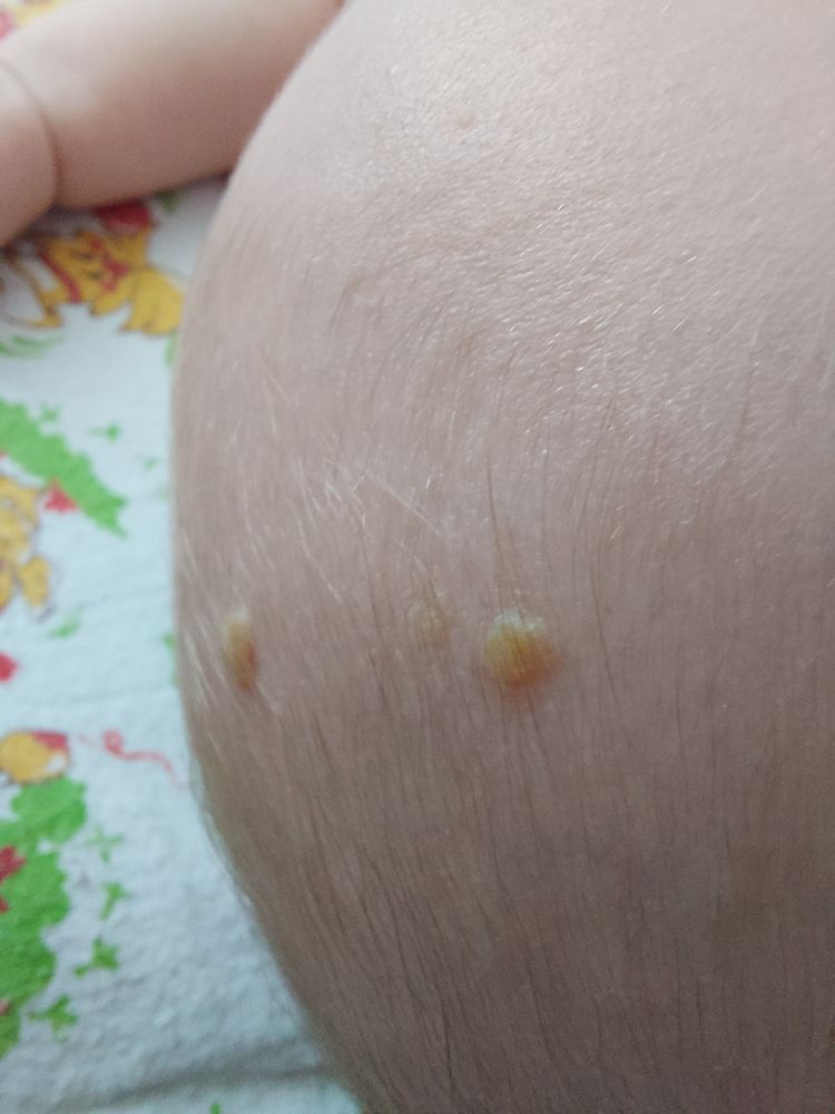 Подскажите, пожалуйста, было ли у кого-то такое.. думала это корочки, но они растут как бы "вверх" и больше уже похоже на шишечки жёлтые, на ощупь плотные, жёсткие(( малышке всего полтора месяца, эти шишечки стали появляться недели через две после рождения, теперь растут и появляются новые.. педиатр на осмотре ничего не сказала..