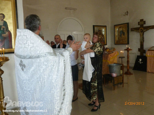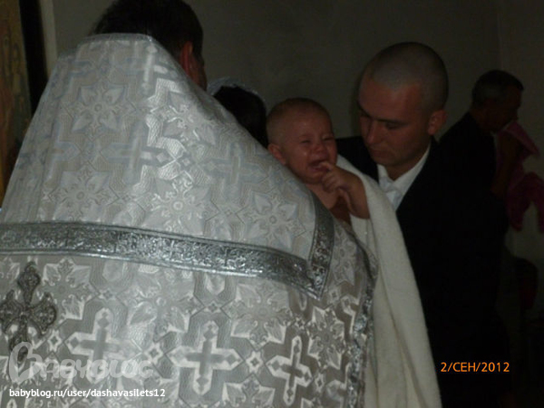 Сердце кровью обливалось,когда Димок орал не своим голосом,когда батюшка его окунал и обливал св.водой,хотелось забрать и уйти с сыночком домой...ну ничего,мы выстояли!