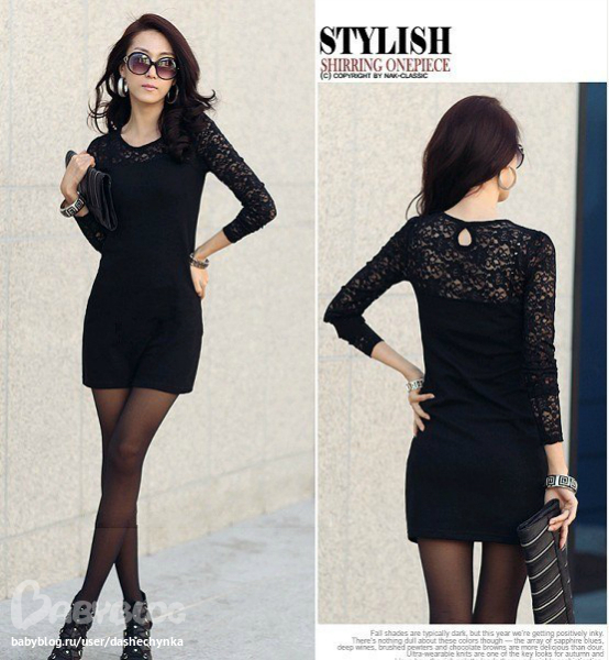 1.Платье черное, размер L(Длина: 82см, рукава: 60см Плечо: 36см Бюст :85-94см Талия: 75см), кружево+смешанный хлопок. Цена: 460 руб...Очень красивое и аккуратное.