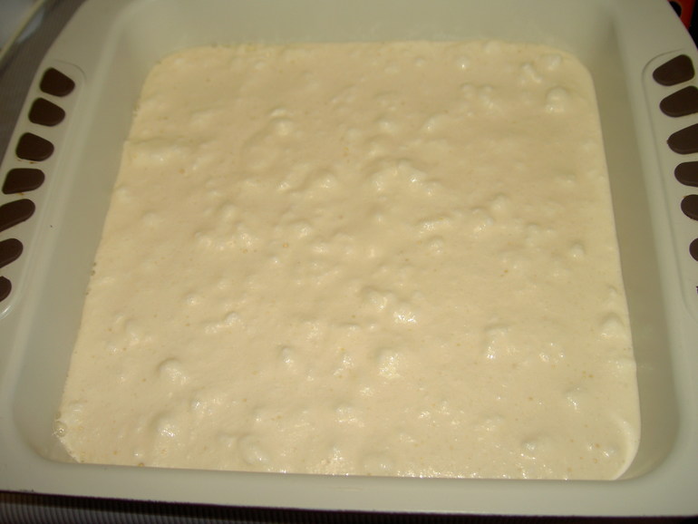 Переливаем тесто в форму для выпечки. Не стоит использовать разъемные формы, иначе тесто может протечь.