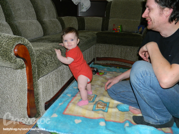 Наш уже сам становится на ножки неделю...а вот на попу не садится,да и беззубые мы....