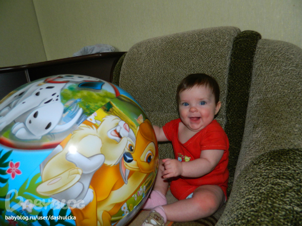 одна из любимых игрушек - большой пляжный мяч. правда парни ее на днях изнечтожили, чем-то прокололи(((
