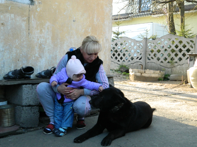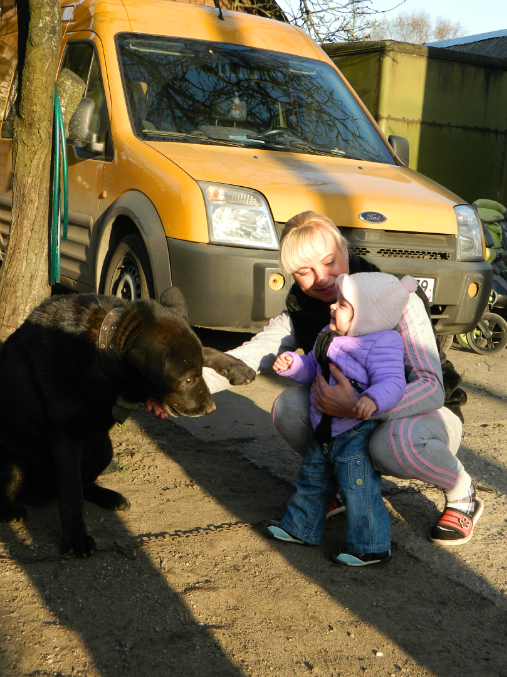 с крестной и любимой собакой. Настена вообще собак очень любит