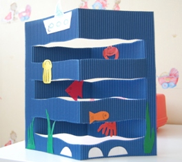 Это наш аквариум. Из картона и животных приклеенных. Дочке очень понравился, весь вечер его рассматривала, папе показывала