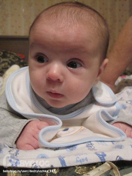 Сыночку сегодня 3 месяца! мы пока не переворачиваемся,пару раз было и все. агукаем и ещё гулим,появились новые звуки и слоги))))))) такой интересный становится,улыбатся стал чаще намного,и немножко может смеятся,правда тихо) когда с ним разговариваешь то может долго УКАТЬ...так смешно выходит,протяжное...ууууууу)))))))) в среду пойдём в поликлинику,узнаем рост и вес. много вещичек уже малы))) носим 62 - 68 размер) головку уже хорошо держит когда на ручках,а вот лежать на животике ленится,но старается)))))) погремушки и игрушки,когда висят над ним,бьёт ручкой и разговаривает с ними))погремушку держит хорошо в руке.Слюни льются и капают,сосет кулачки и пальчики,а так же погремухи. единственно что меня сейчас напрягает,так это голова..( он всё направо больше смотрит.и на ручках и лежа, на массаж сходили раз 5 всего,а там морозы начались плюс он сопливил ...я дома делала.но видимо безрезультатно.завтра к неврологу идти,посмотрим что скажет.