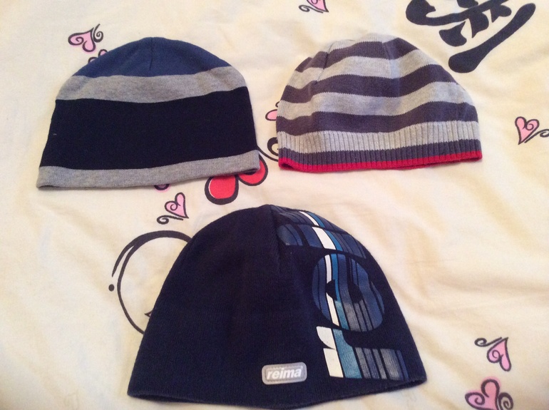 Шапочки в идеальном состоянии.Сезон осень-весна.Верхние(полосатые) размер 48-50.Нижняя Рейма 52.Любая за 450р.