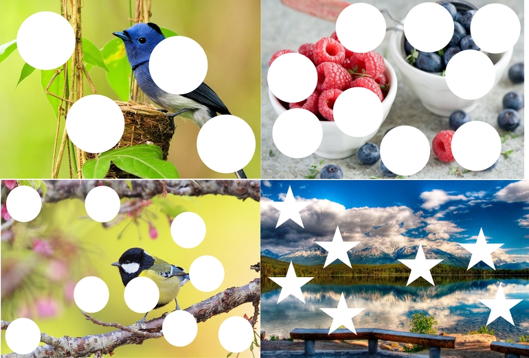 Доброго времени суток, дорогие мамочки! В последнее время мало что успеваю и никак не могу выстроить в систему свое время(( Иногда выдаются минутки - и я сразу в ваше прекрасное общество! Сегодня хочу показать вам еще один небольшой материал, который Настя очень любит! (К сожалению, никак не могу сфоткать, как она играет) Итак, под катом материал с окошками и заплатками, который лично для нас служит хорошей альтернативой пазлам. Кроме того материал хорош для развития цветовосприятия и текстур, изучения понятия "далеко-близко" и как это отражается на фотографии, и местами знакомство с формами.