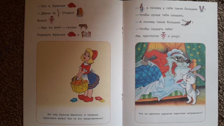 А еще наша любимая книга "мальчик с пальчик". Там надо было наклеить недостающие фрагменты. Наклеили, а теперь читаем её с удовольствием.