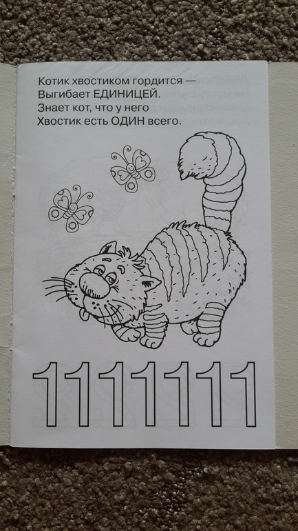 Внутри обычная раскраска с простыми картинками и коротенькие стишки.