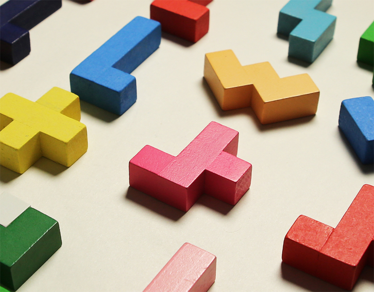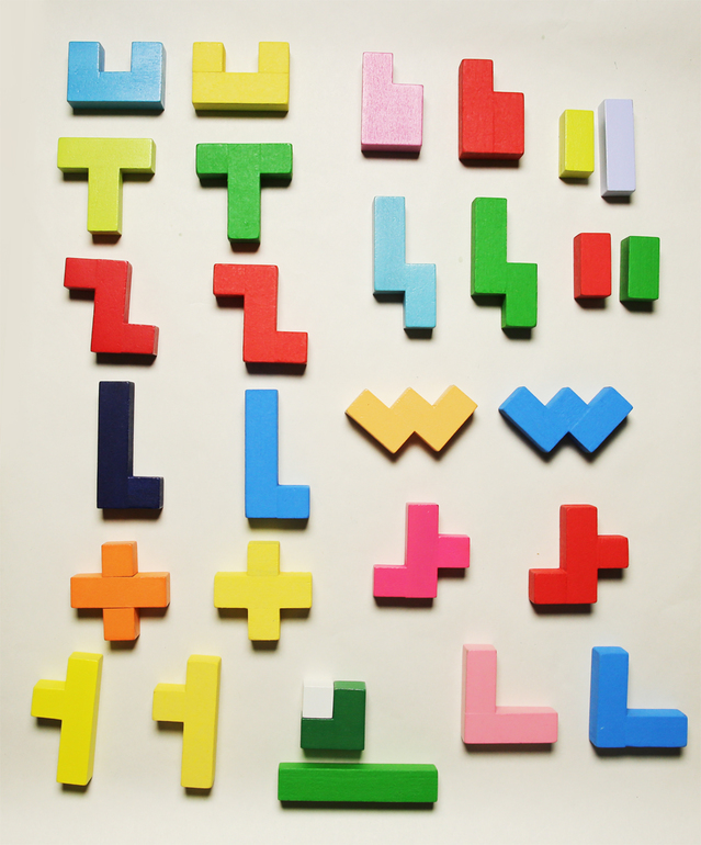 Есть задания на сбор плоских фигур (причем с несколькими вариантами комбинаций) и объемных.