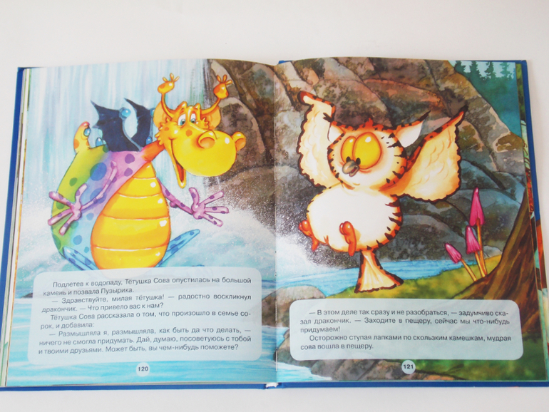 В последнее время заметила, что моему сыну нравятся драконы. Обращает внимание на мультики и игрушки с драконами, а когда к нам в руки попала книга «Приключения дракона Пузырика» сын сразу же стал её рассматривать.