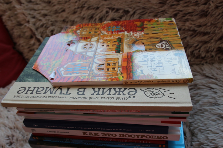Ну, а дальше уже рассматриваю я, ему все еще рано) Как обычно, многие книги прилично так на вырост. Нужно честно признаться, многие из них я беру себе. А потом уже достанутся ему :)