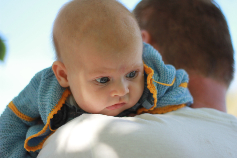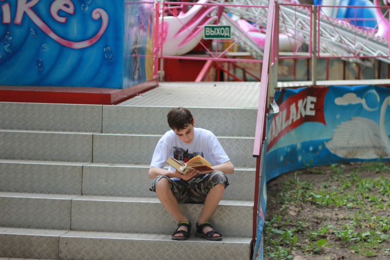 Наконец таки выбрались всем семейством погулять в парк, погода радовала, старшие девочки веселились на аттракционах, Настя рассматривала листву, лежа в коляске, Федя..читал