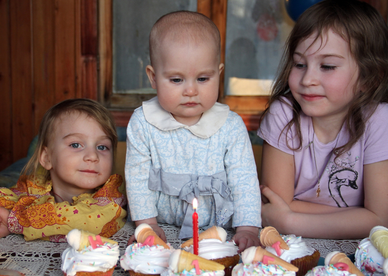 НастяПролетел один год, почти как один день. Когда Настёна успела вырасти..конечно же я не успела насладиться младенчиковым возрастом, но всё равно пока она моя "моя малышка", девочка-бояка, боится совершенно неожиданных для меня вещей, например, стоять ногами на улице, зайти в кабинет врача, "летать" над маминой головой, зато освоила ступеньки, уже половину лестницы на 2-ой этаж преодолела, на Варину кровать с 4-мя ступеньками залезла сама, сегодня штурмовала Дунину кровать-чердак, она повыше Вариной поэтому пока у Насти не получилось, она шлепнулась со 2-ой ступеньки. Пока сама не ходит, реедко делает пару-тройку шагов, всё остальное расстояние преодолевает ползком. Сегодня почтислучайно попробывала пироженое, сначала пальчиком разминала крем, потом всей пятерней раскромсала капкейк и..облизала пальчик. Вчера бабушка к нам приезжала, сначала Настя подозрительно к ней отнеслась, а потом признала и сидела у неё на руках.А сегодня от гостей была не в восторге, большую часть времени провела сидя на руках у меня или папы, а к вечеру так утомилась, раскапризничалась и уснула. Ещё раз С днём рождения, моя малышка!