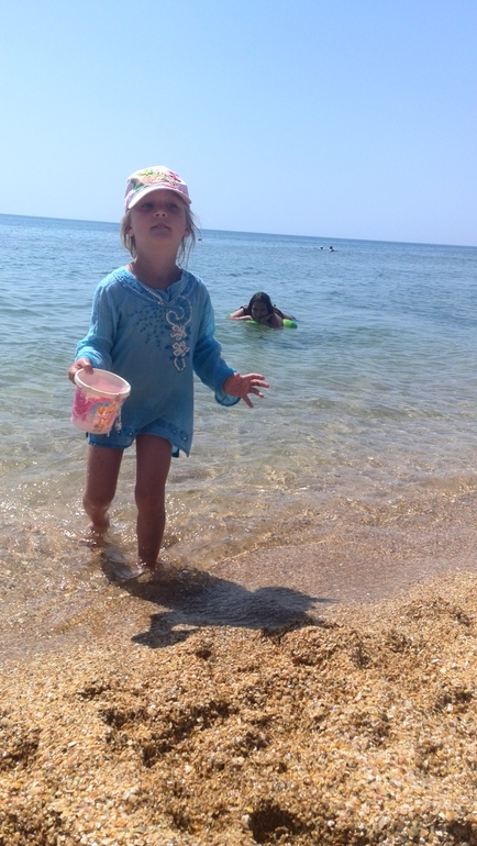Пришла наконец таки. Открыла купальный сезон вчера. И я подгорела, хотя вроде на солнце не лезла и Варя тоже, лицо и плечи, плохо, надо следить более тщательно за принятием солнечных ванн. Мы облюбовали пляж с вай фаем и зонтиками. Народу тут мало, наверно думают, что пляж платный и не идут, а мы идем)