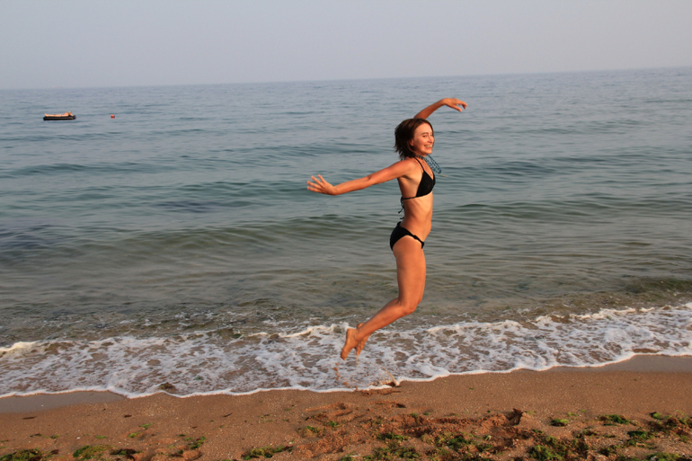 отдыхСегодня плавали на паруснике с Дуней и Варей, Настю с Даней оставили. Я плавала в открытом море))), Варя тоже попыталась в жилете, но испугалась, начала хвататься за меня и топить, затащили её обратно. Потом, держась за корму плавала, как дельфин на волнах под парусом, прикольно, чуть купальник не уплыл, ахах. Далее были прыжки на берегу и фото ''лови момент''