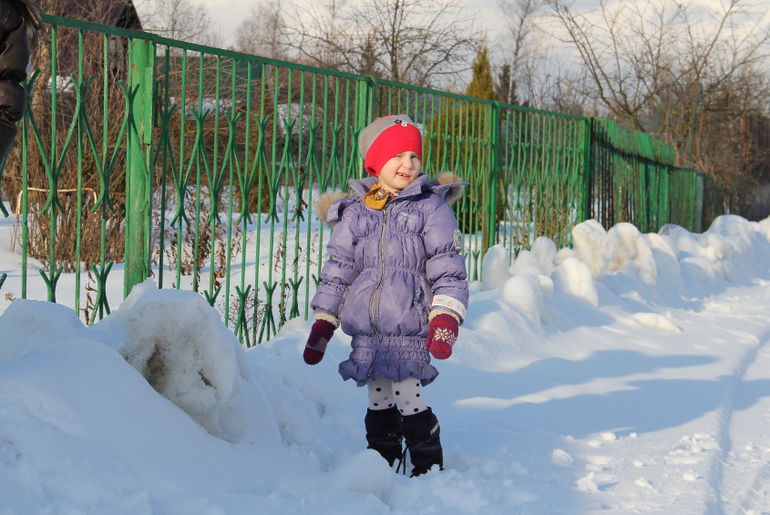 Шкодная девочка. Такая она стала смешная, как скажет что-нибудь иногда. В последнее время крикливая, надеюсь перерастет. По-прежнему любимая одежда "Евы", т.е. голая. Одеться может, если знает, что гости придут и то не всегда. Не любит причесываться, умываться, волосы постоянно спутаные, лицо чумазое, но купаться любит, вот тогда я её умываю и причесываю. Писается, особенно когда заиграется, любит общество детей, но может прекрасно играть одна, нравится на детских площадках и игровых центрах, в детсаду была 1 день, вроде тоже понравилось. Люблюю мою шкодную девочку)))