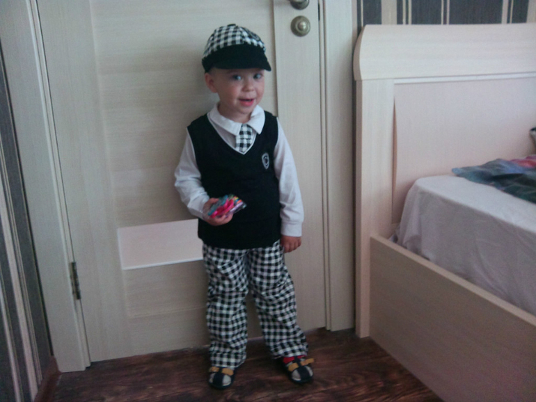 13.Цена 1100руб. размер 80см,100см,110см Классический костюм-пятёрка : пиджак,рубашка,брюки,жилет,галстук-бабочка. Замеры костюма : Длина брюк по внутреннему шву 44см . Пиджак : длина рукава от плеча 34,5см, длина от плеча сзади до низа 43см,