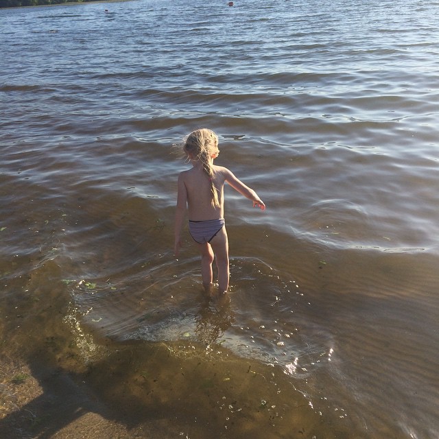 Ну вообще то можно было и на приведущих выходных искупаться, но что то не стали. А вот сегодня открыли сезон заплывов. Кристина, конечно, больше всех рада. Жилет из кладовки достали и вперед.