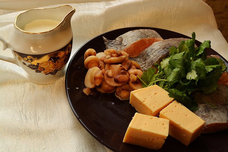 В меню скумбрия пряного посола (темное), суп с фрикадельками из карпа (белое), сливочный суп с горбушей (красное).
