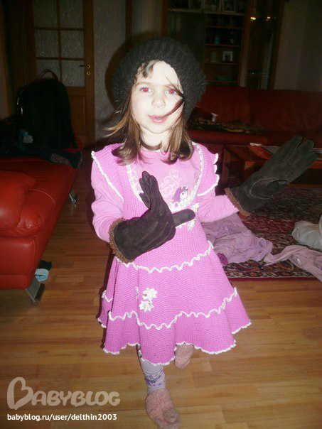 а это она так дурачится а потом еще и позирует стоит )))на ногах кстати её варешки )))