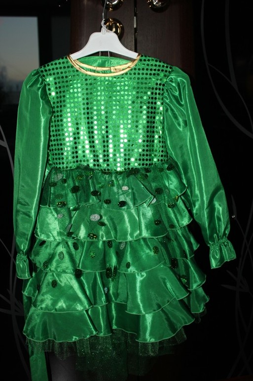 Продам красивый новогодний костюм елочки. На рост 116-122. В комплекте колпак ёлочки с вуалью. Живьем платье смотрится красивее, фото не передает. На платье тоже вуаль, на ней блестки.