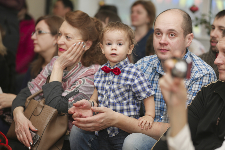 Мирошик с папой тоже смотрели утренник, правда папе приходилось удерживать его от попыток прорваться "на сцену".