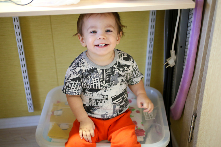 Очень находчивый и активный! Научился залезать на окно, открывать морозилку, снимать фотографии в рамках со стены, открывать-закрывать жалюзи, хозяйничает во всех тумбах на кухне 😱 и не только. Влезает на второй ярус кровати (к Майе) и на вторую ступеньку шведской стенки. Со слезанием с неё пока проблема решается так: "Мааааам!!!"