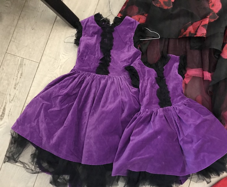 Можно увидеть фото чёрного платья с розами и размеры обеих?