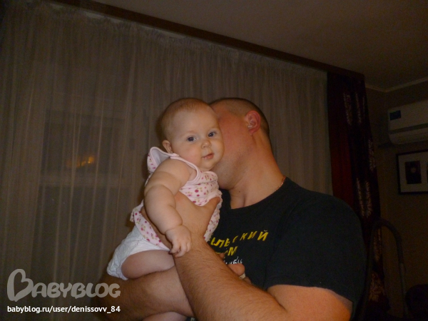 Это папа ее нежно в шейку целует, а может шепчет что-то...
