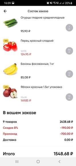 Получите скидку 300 рублей (~42%) на первый заказ от 700 рублей #промокод gbdcqt