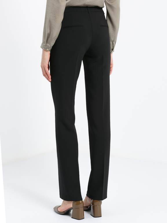 Прямые брюки со стрелками и аксессуаром на поясе.