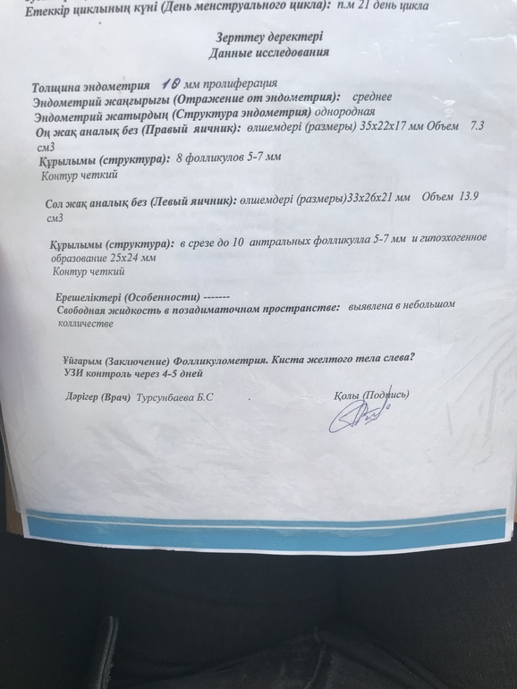 Сама врач не знает фолликул или овуляция была как думаете???что делать, врач говорит что превратиться в кисту желтого тела(помогите