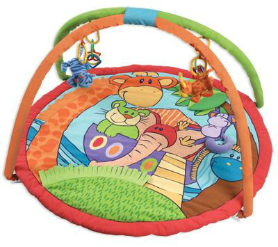 Развивающий коврик Discovery Gym Playgro «Ноев Ковчег» - это яркий коврик, выполненный из разных по фактуре тканей, с двумя мягкими арками, к которым прикрепляются забавные игрушки-погремушки и колечки-грызунки.