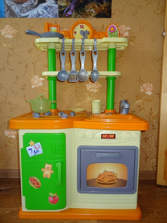 Кухня в идеальном состоянии, играли аккуратно и немного. Пицца на липучках в подарок