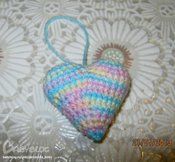 Приближается День всех влюбленных - 14 февраля. Вот такой подарок можно подарить любимому человеку: сердце - выполнено крючком. Высота без петельки - 10см.