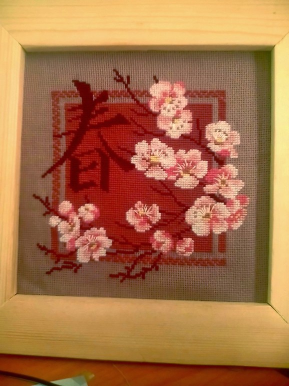 Вышивка крестом с двух сторон. Сделана в подарок.