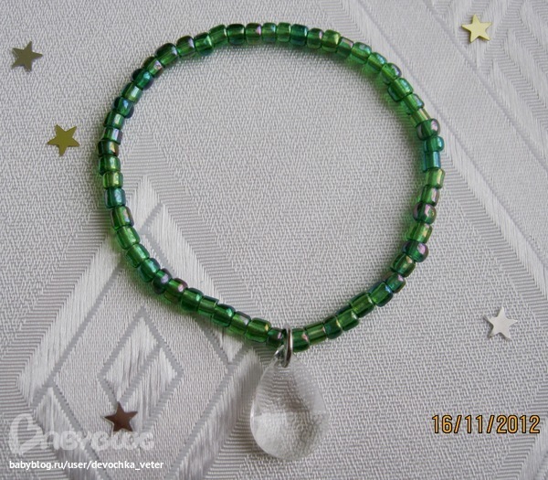 Вот теперь и доча вдруг решила заняться рукоделием, и мне приходится выступать в роли учителя. Пробовали вязать, пока не получается, отложили. Потом ее взгляд упал на мои запасы бисера. Начали с самого простого. Вот что из этого получилось: