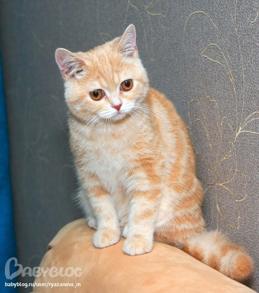 Цвет у него странный, он при дневном свете - такой как на фотках у окна, светло бежевый. А при комнатном освещении более рыжий:) Да....Мотя стройняшка, и мелкий по росту и объемам, у него сестра еще есть - такая же:))